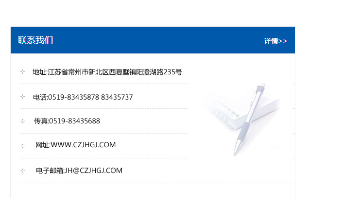 傳真:0519-83435688    郵編:213135    網址:WWW.czjhgj_com.qq718.com    電子郵箱:JH@czjhgj_com.qq718.com
